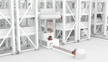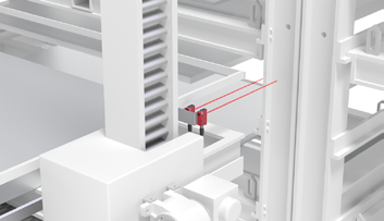 After the rough positioning of the stacker crane, the position of the container in the horizontal (X) and vertical (Y) directions must be precisely determined. To do this, the edges of the beams and pillars must be optically sensed at a distance of 100 to 600 mm.