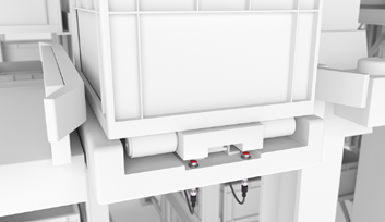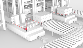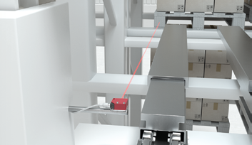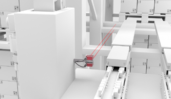 After roughly positioning the stacker crane, the container’s position in the horizontal (X) and vertical (Y) directions must be precisely determined. To do this, the beam and support edges must be optically sensed at a distance of 100 to 1,900 mm.