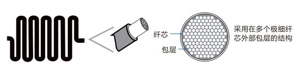 This fiber has a small bend radius and is difficult to break, making it easy to connect. Even with bends, it minimizes light attenuation and is easy to use.