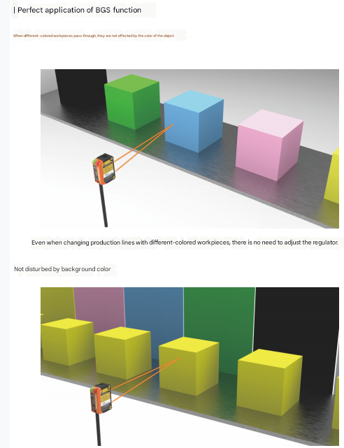 When different-colored workpieces pass through, they are not affected by the color of the object.