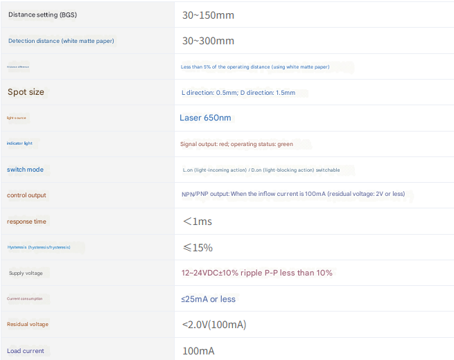 The spot diameter is only 0.5mm, making it suitable for detecting small objects at long distances and unaffected by background conditions.
