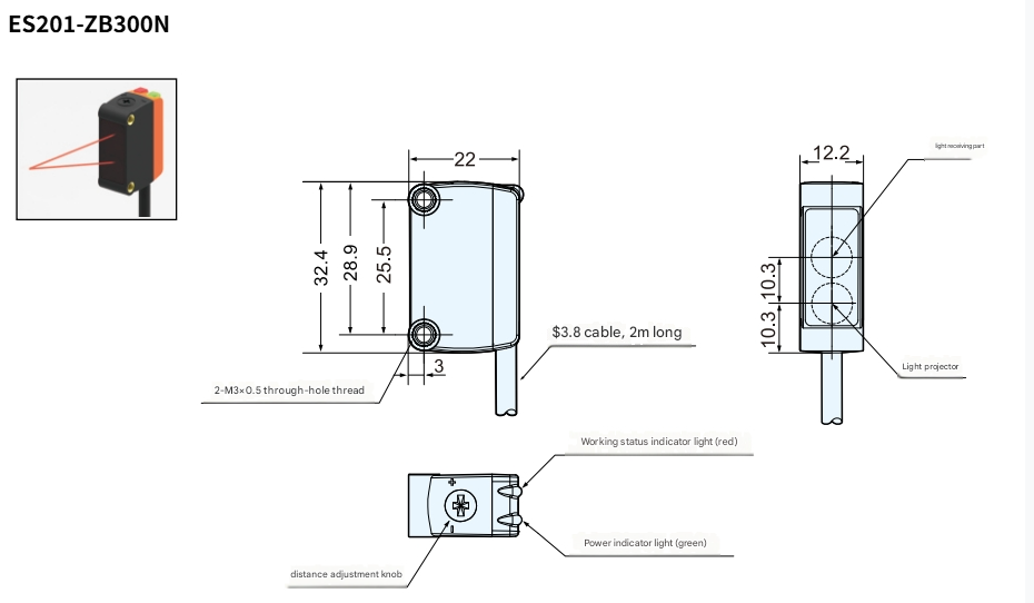 ES201-ZB300N Photoelectric/Laser Sensor
