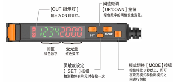 The reference value adjustment and switch are operated by buttons, and the functions that are not frequently used are set and operated through the built-in function menu.