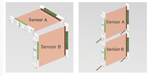 Set the two sensors to different emission frequencies to prevent mutual interference. Using two sensors simultaneously allows for detection over a wider area. The set frequency is determined by the number of illuminated emission indicators.
