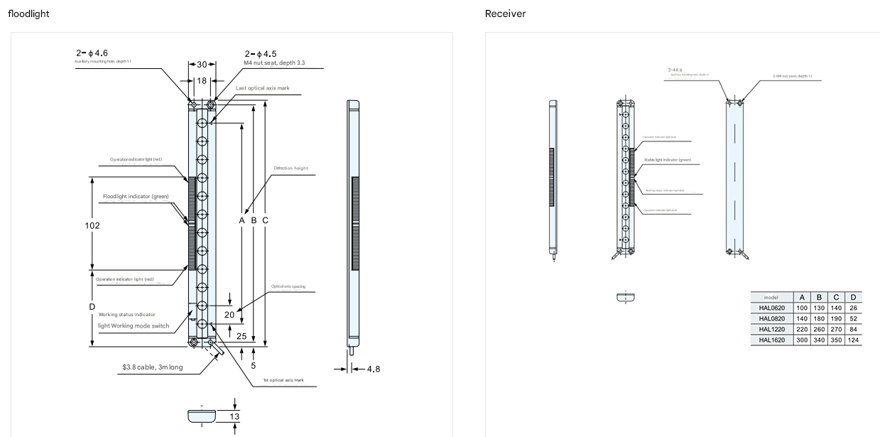 This series includes 6, 8, 12, and 16 optical axis models. Available in detection heights of 100mm (6 optical axes), 140mm (8 optical axes), 220mm (12 optical axes), and 300mm (16 optical axes).